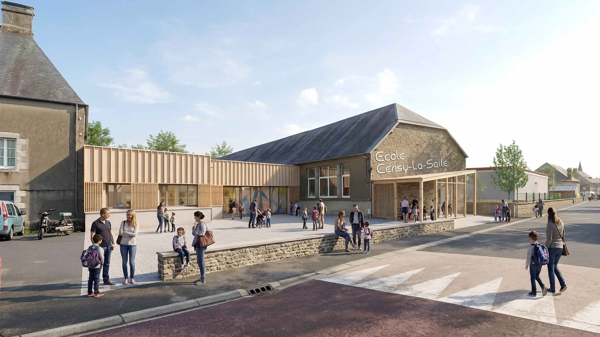 L’opération consiste à créer une extension de l’école de Cerisy-La-Salle. Cette extension accueillera une partie de l’école mais également l’accueil de loisir (ALSH)